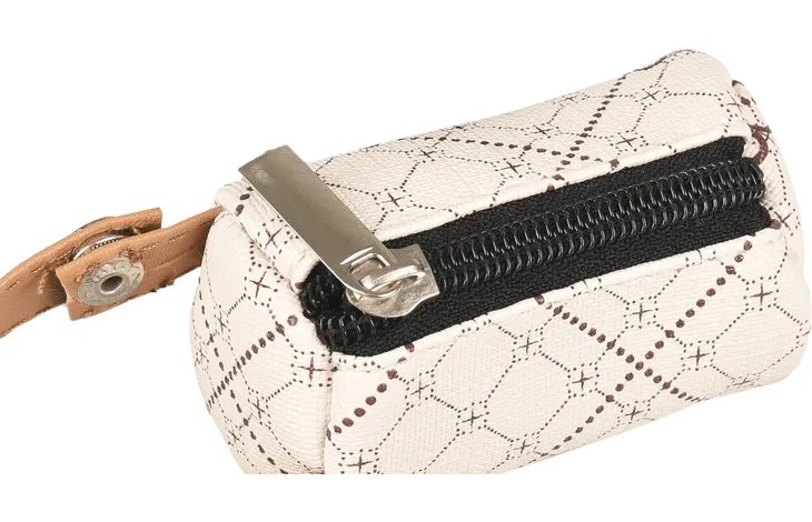 Porte-sac en plastique et cuir avec fermeture éclair et mousqueton pour une accroche facile